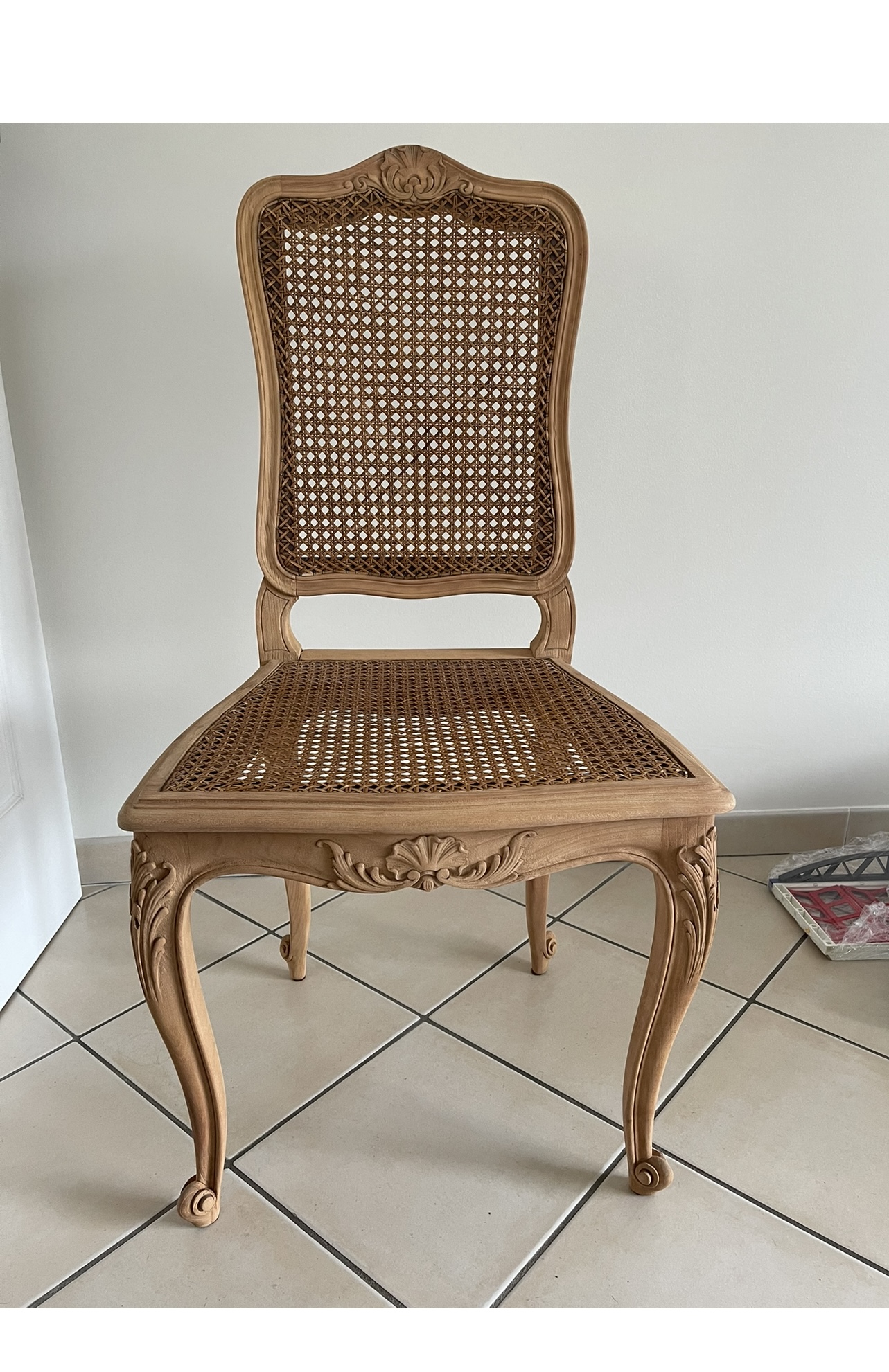 Afin de donner une seconde vie à nos chaises et donner un aspect plus moderne nous avons fait appel à la société APO . Le résultat de l’aerogommage a été au delà de mes espérances malgré la difficulté posé par le cannage. Un grand merci à toute l’équipe pour sa gentillesse lors de nos échanges et leur professionnalisme.