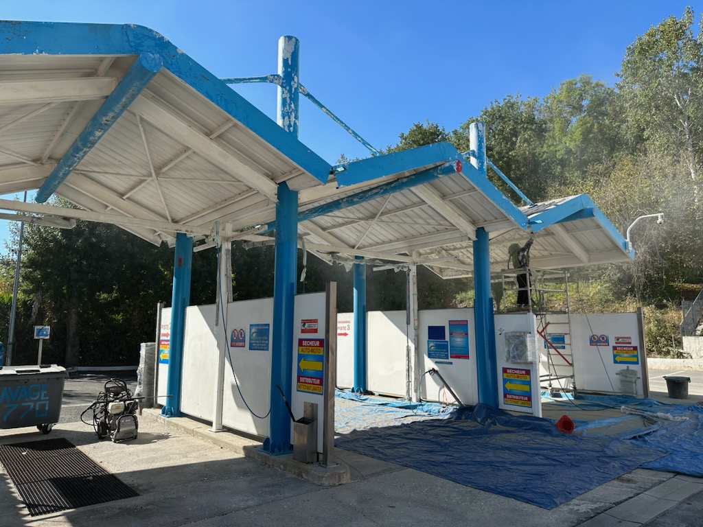 Un grand parking permet de se garer facilement,la cabine en libre service est très pratique,et assez spacieuse,très bien éclairée,bien ventilée,une combinaison,gants,casque ventilé sont fournits pour travailler en toute tranquillité... L’acceuil est juste remarquable,explications du fonctionnement et un gros chronomètre vous permet de gérer votre temps! Je recommande vraiment cette adresse aussi bien en libre service que pour faire appel à ces professionnels qui en plus d’etres compétents sont extrêmement sympathiques!!!